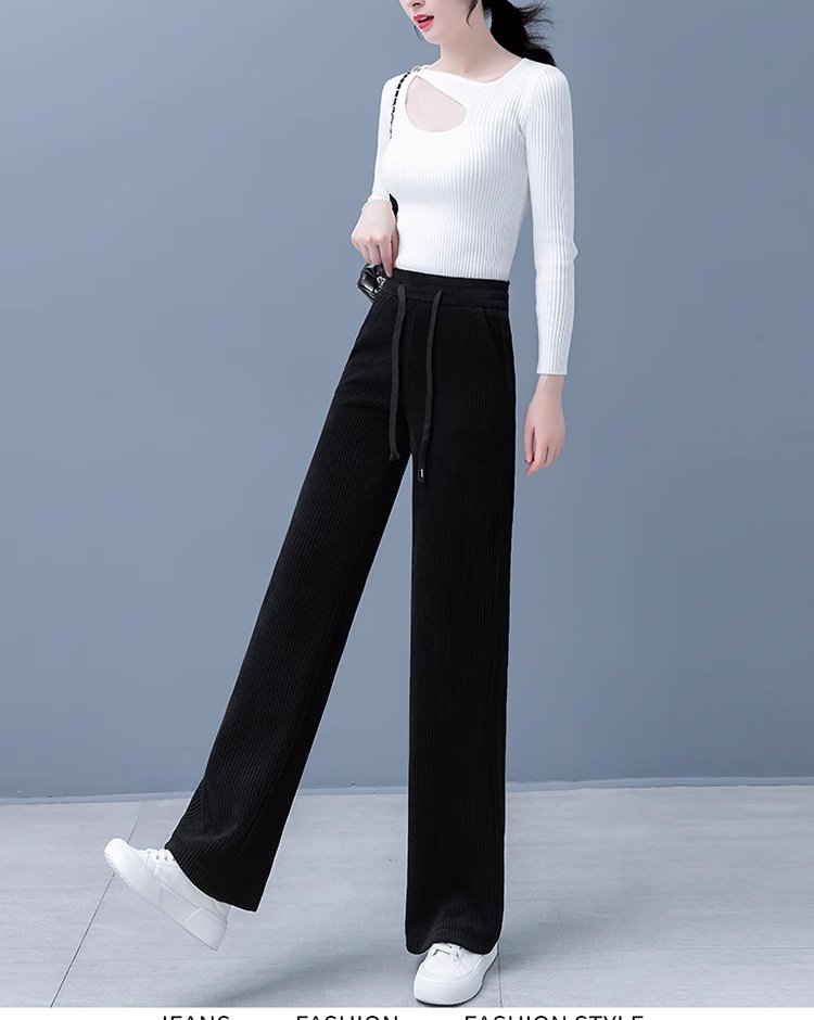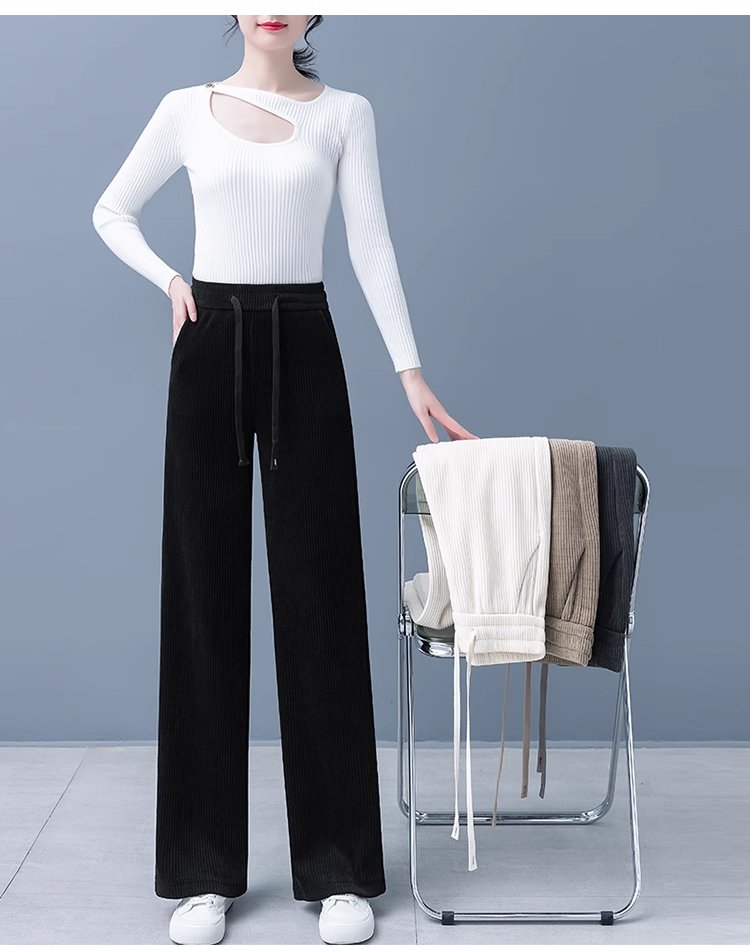 きれいめスタイルのウエストゴムコーデュロイパンツ