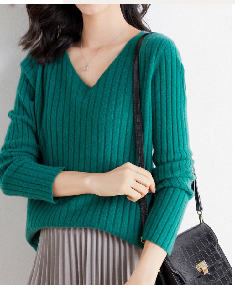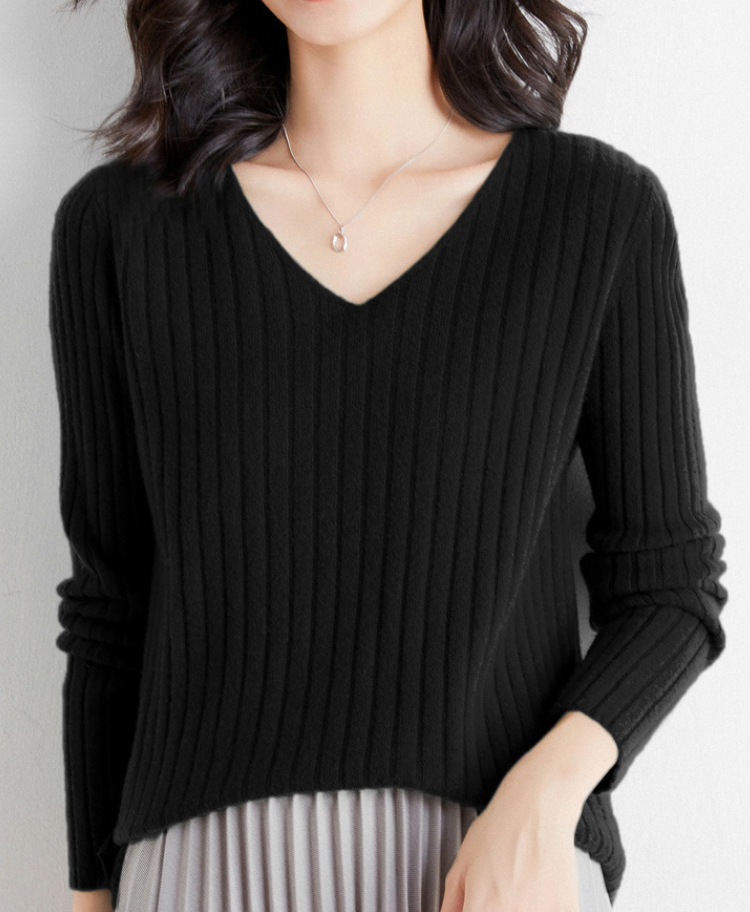 女性モデル着用リブVネックセーター