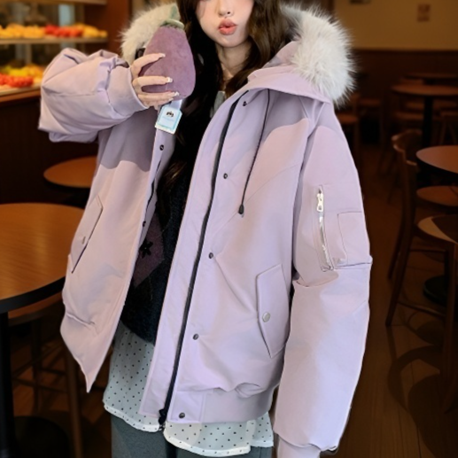 ● ふんわりとした大きなファーが顔まわりを華やかに演出し、冬のコーディネートを格上げします。
